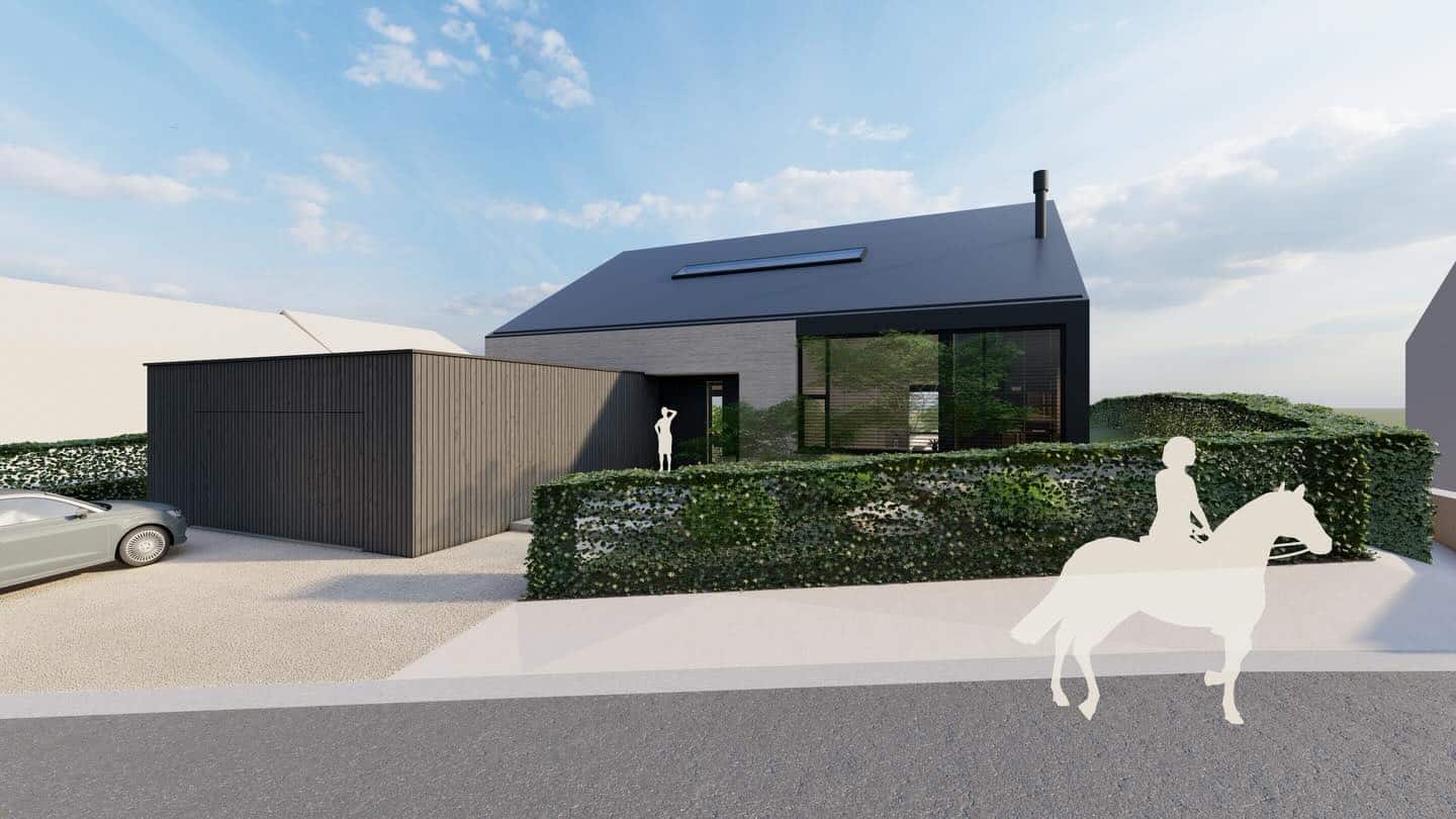 DY_Habitation | Tontelange • 2026 Le volume principal est pensé comme une masse pleine en briques, sculptée par des évidements successifs sur chaque face, créant ainsi un jeu de pleins et de vides qui anime les façades ...