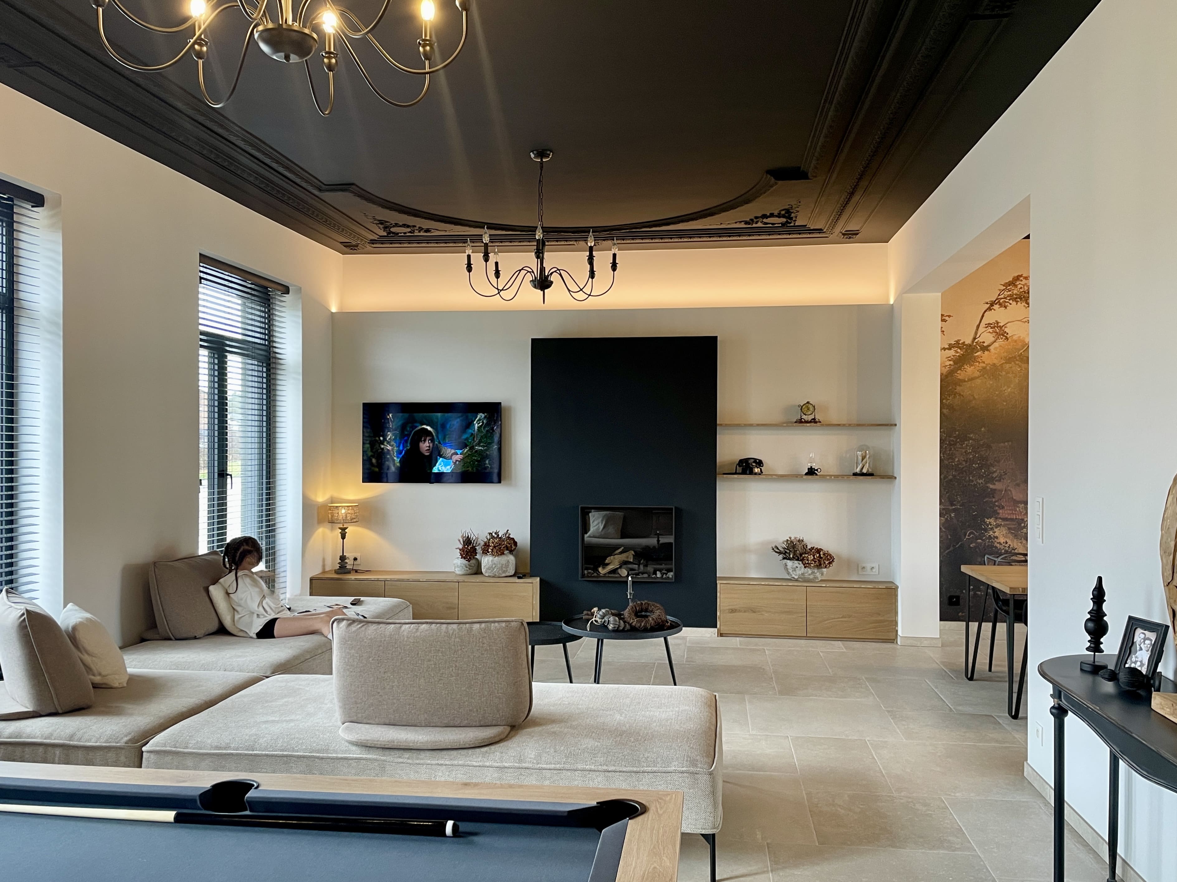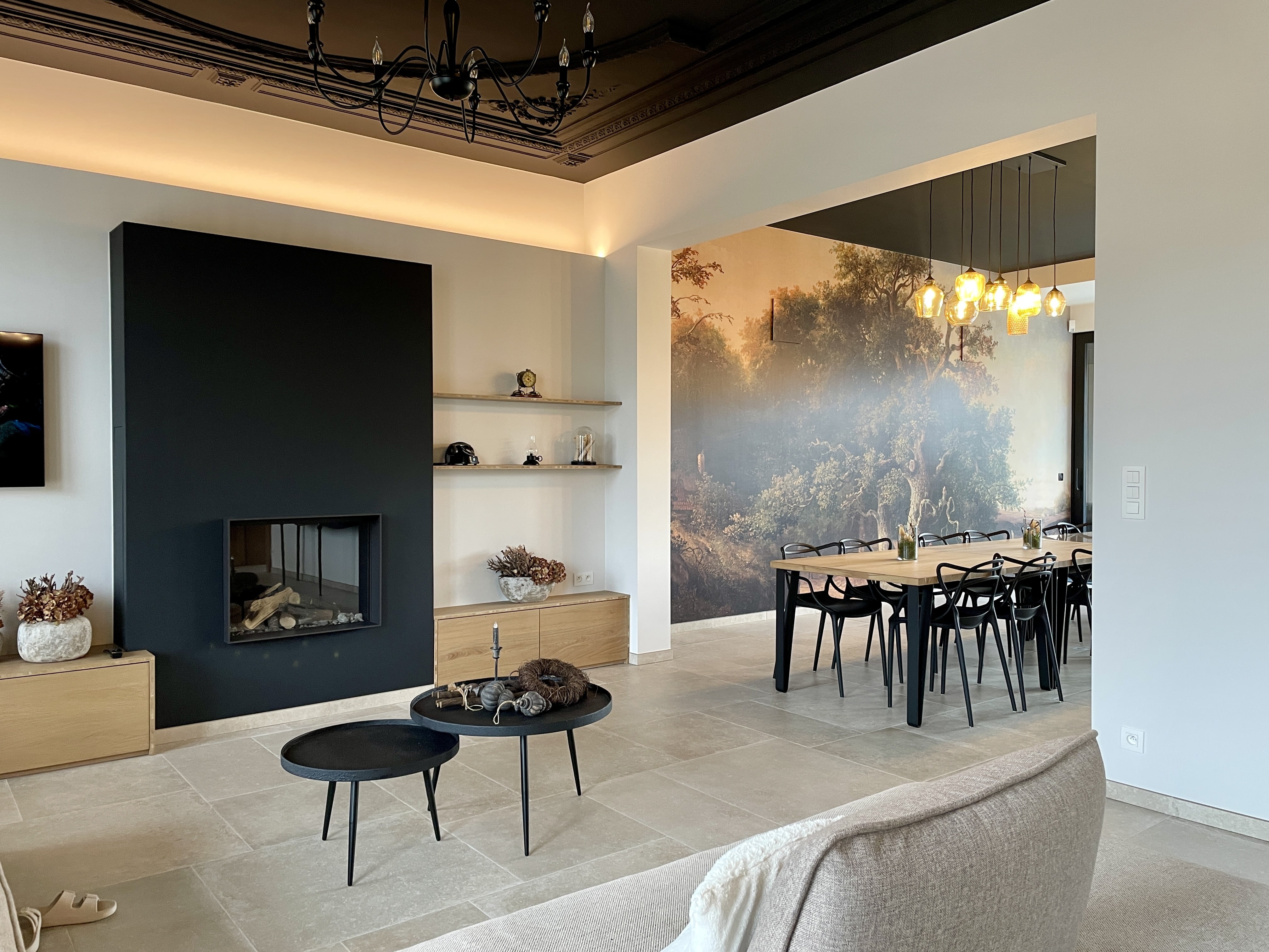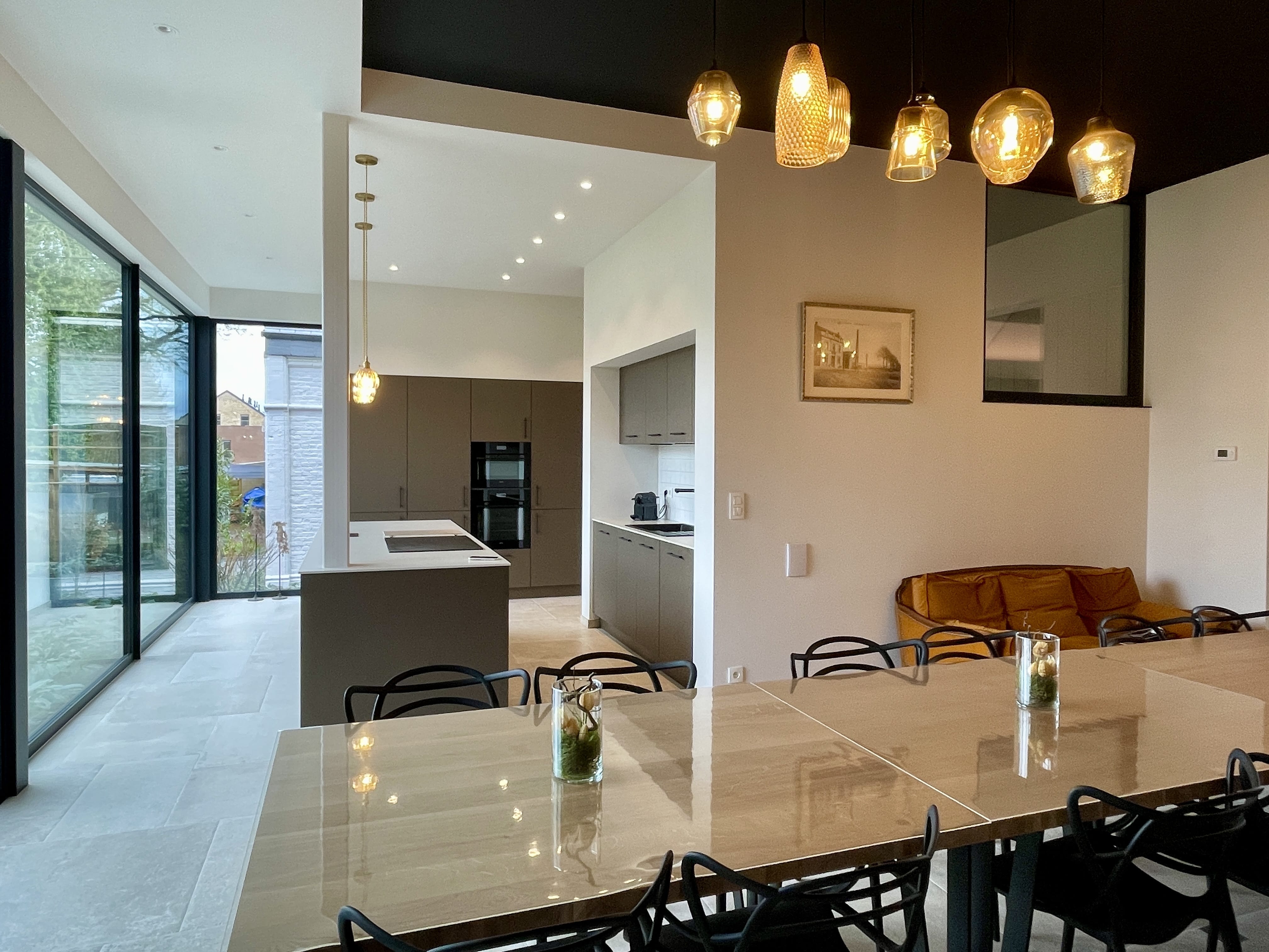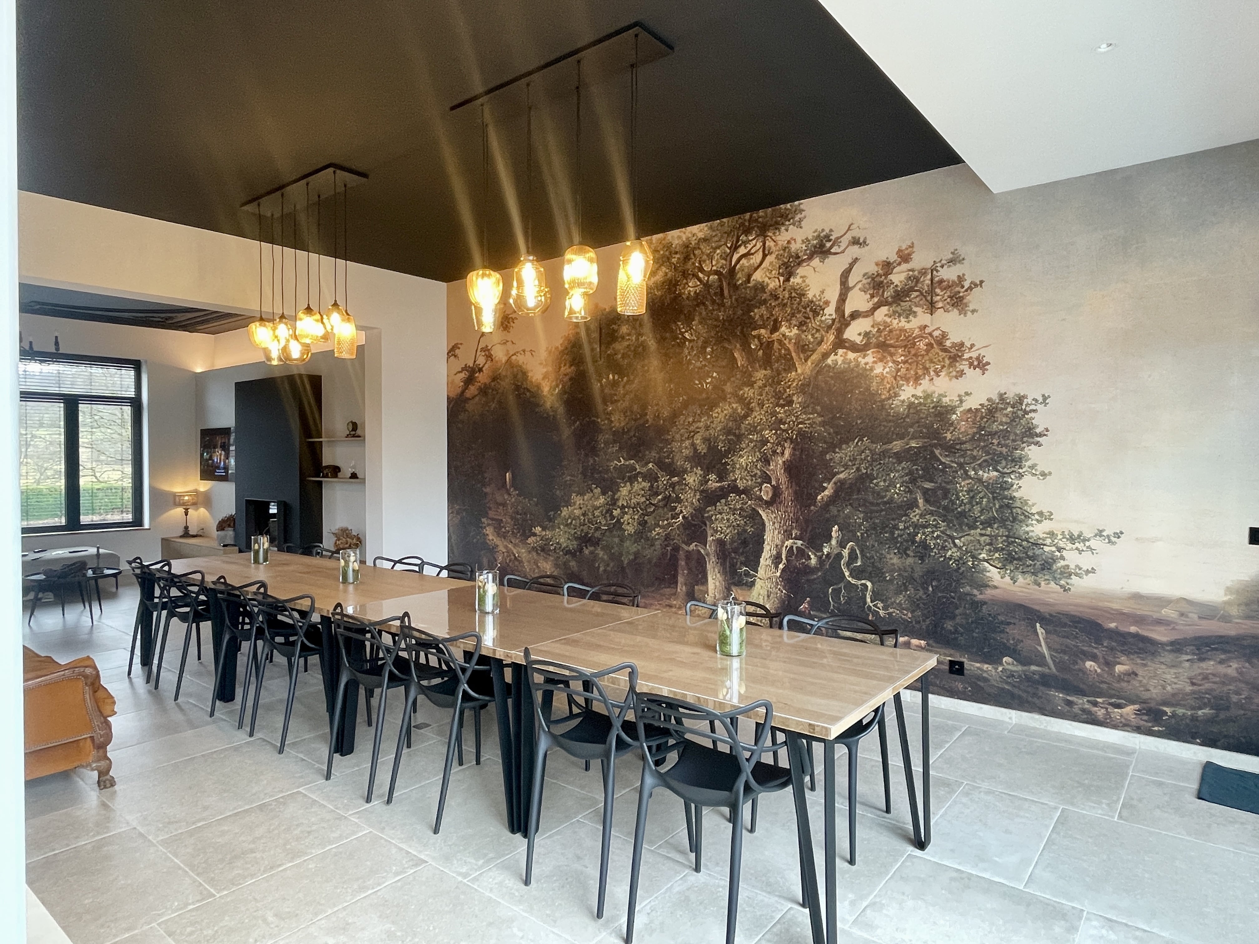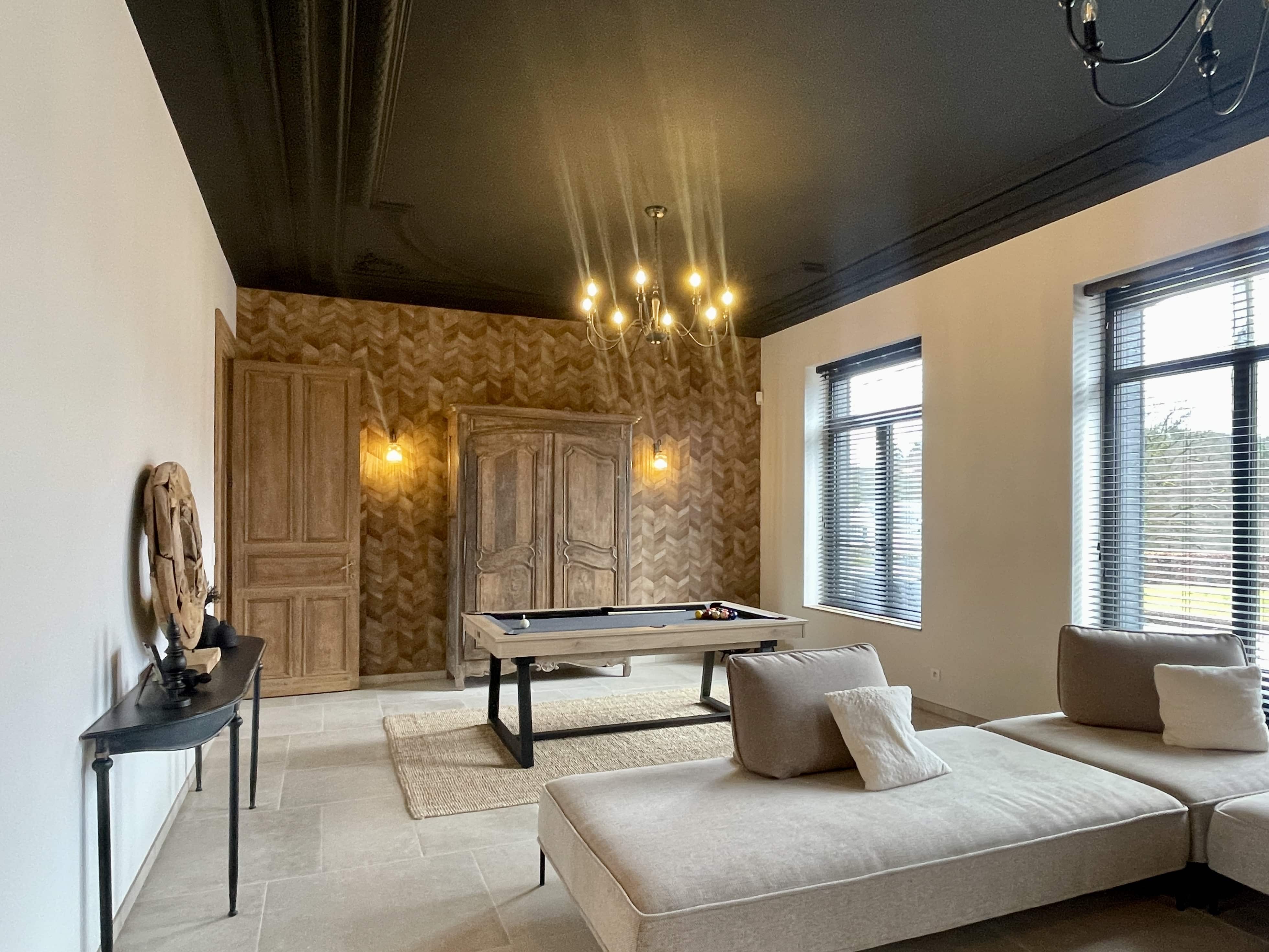Transformation d’une habitation en gîte (14 pers.) avec création d’une zone bien-être et piscine dans le volume annexe existant. Transformations, principalement intérieures de l’existant, dont les volumes ne changent pas. Nouveau volume de liaison avec toit plat pour un ensoleillement maximum du jardin situé au nord. Mise en valeur des façades principales en brique et utilisation du bardage ardoisé pour les autres façades. Travail du panneau Trespa pour l’habillage des tranches de toiture et utilisation du bardage bois pour l’habillage intérieur des terrasses.